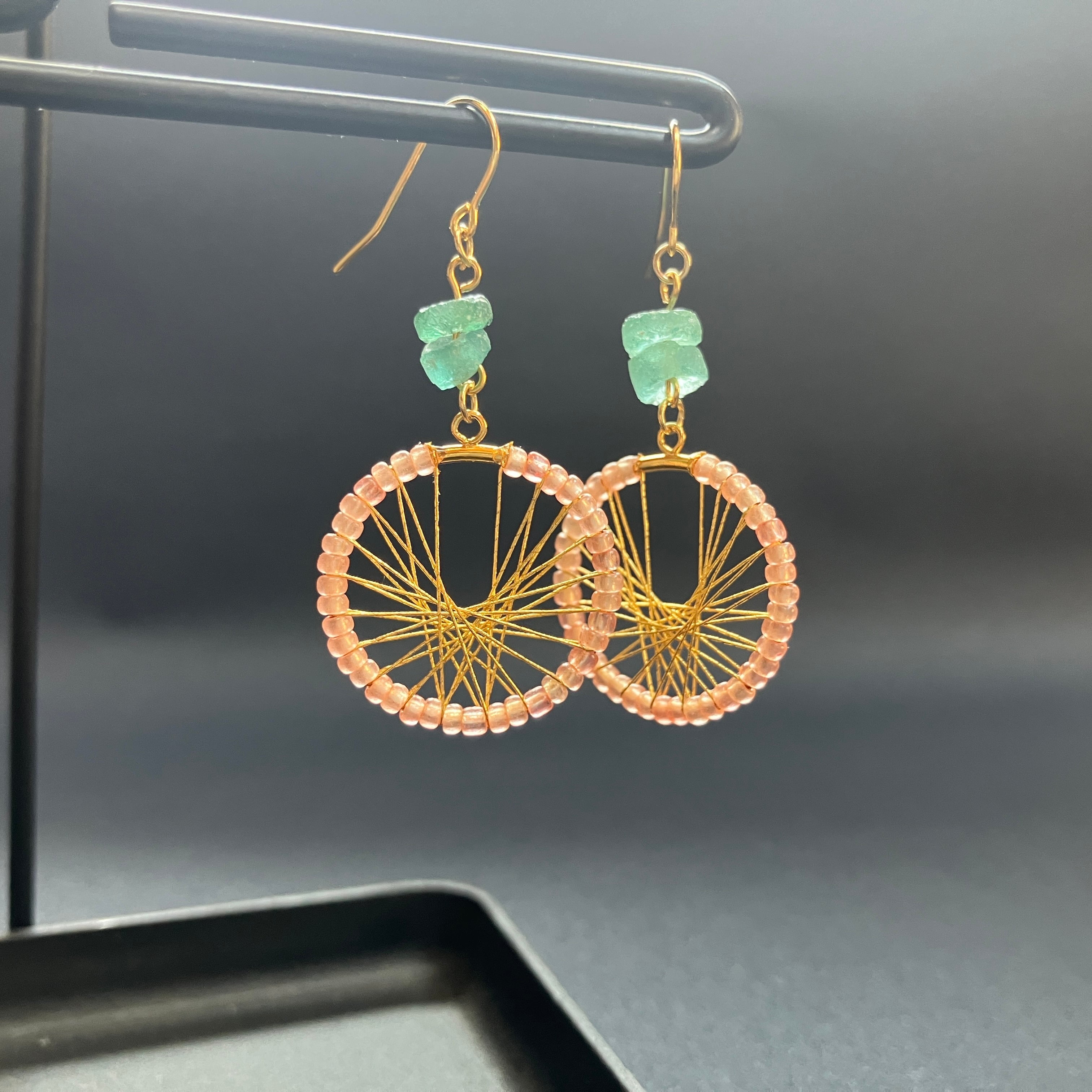 アクセントにローマングラスビーズを使用し透明感をプラス♪