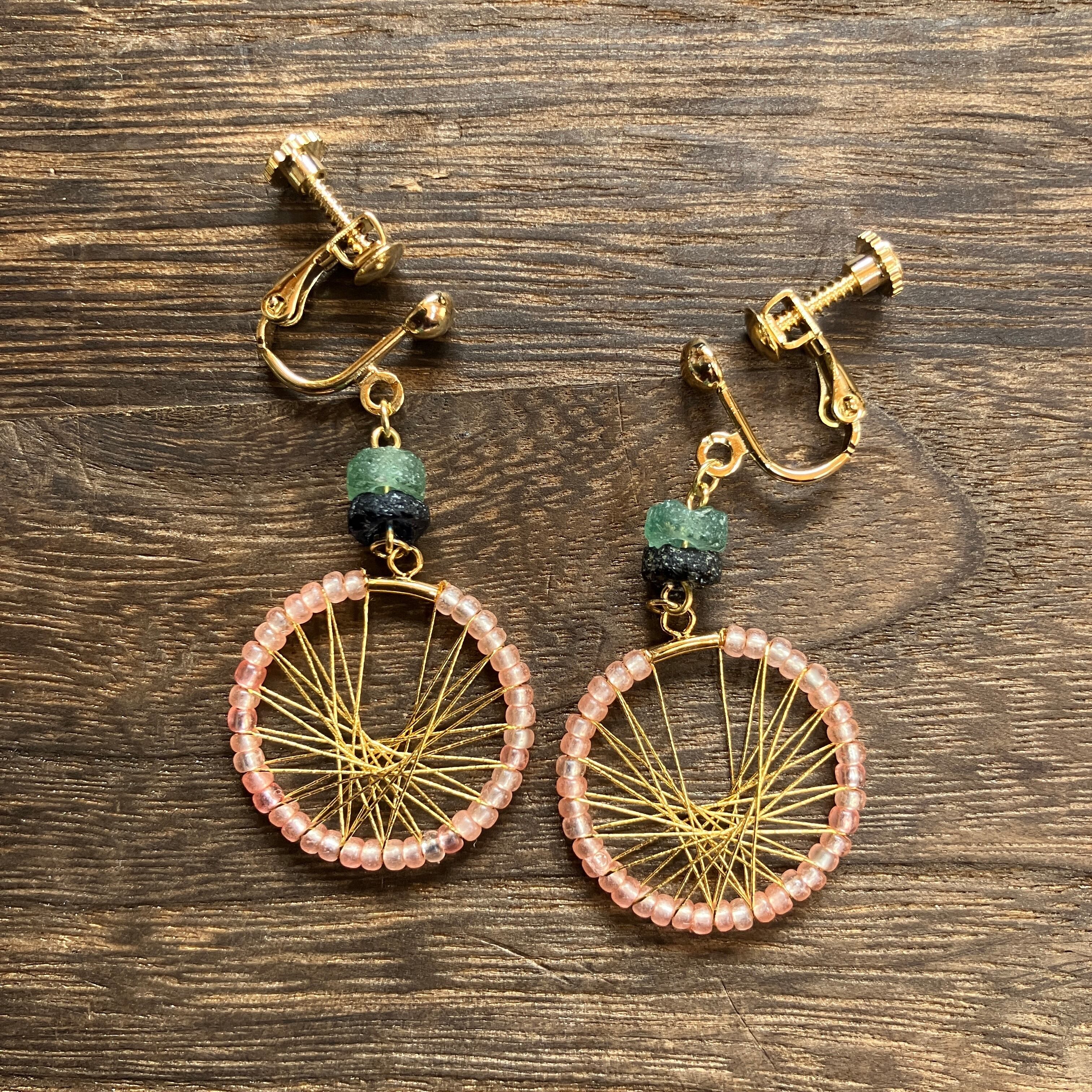 アクセントにローマングラスビーズを使用し透明感をプラス♪