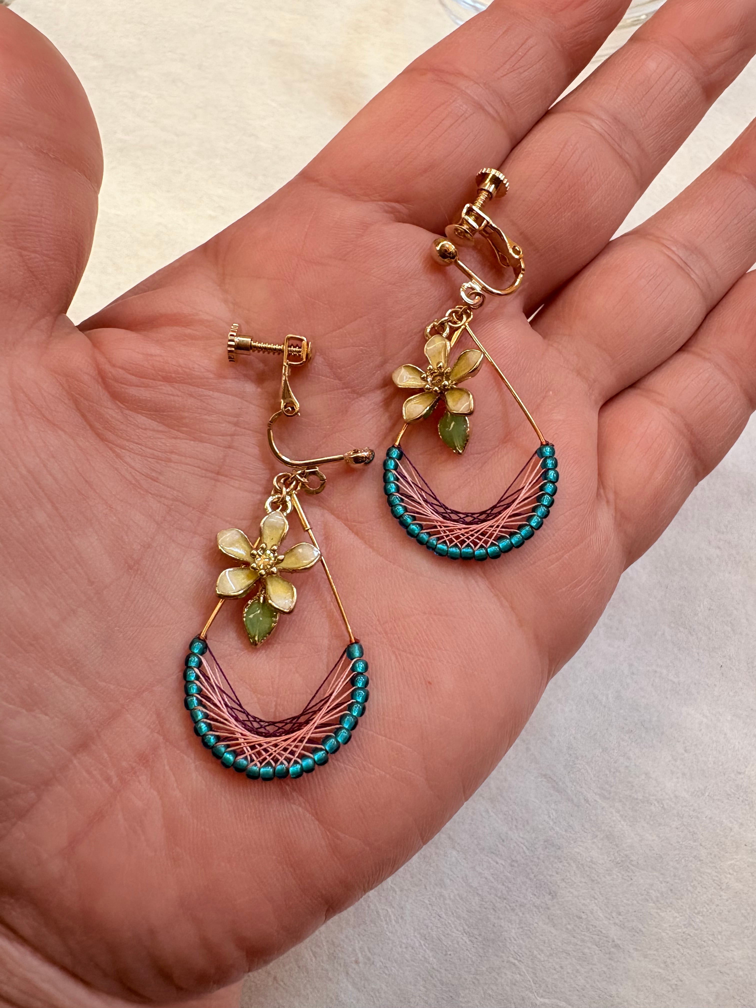 絹糸とビーズの曼荼羅模様のアクセサリー