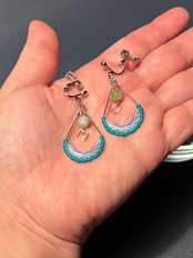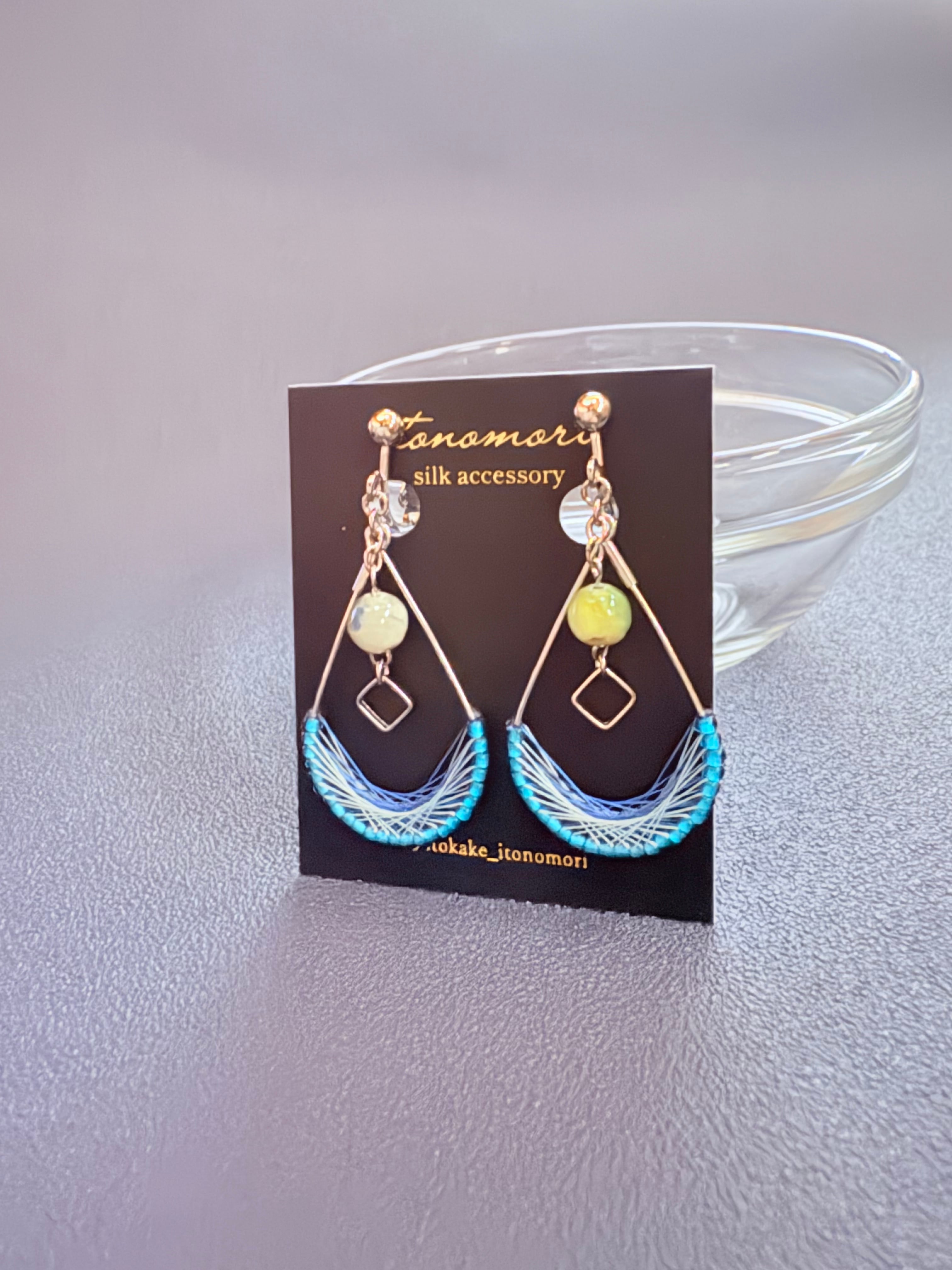 ブルーを基調とした爽やかで落ち着いた印象の揺れるタイプの耳飾り