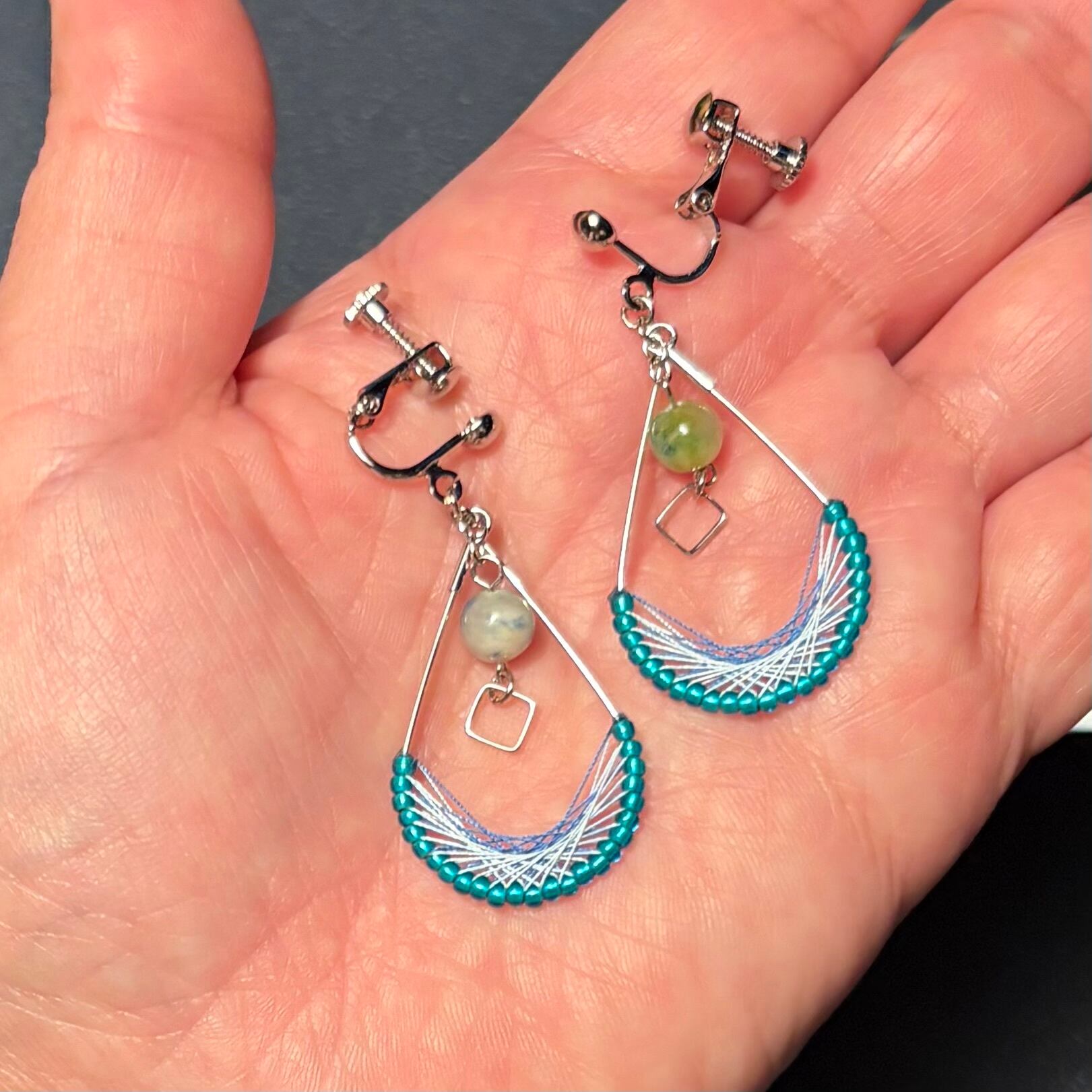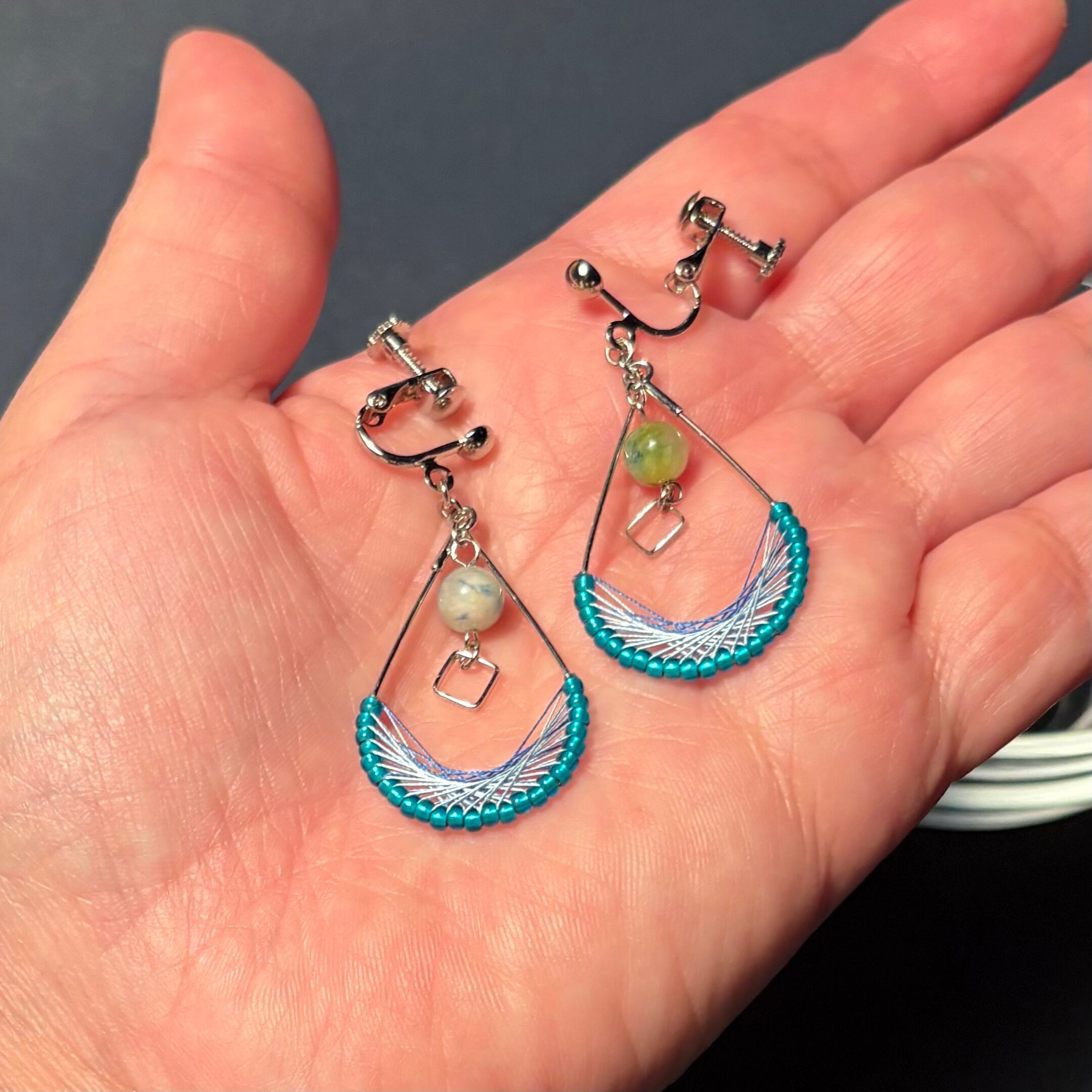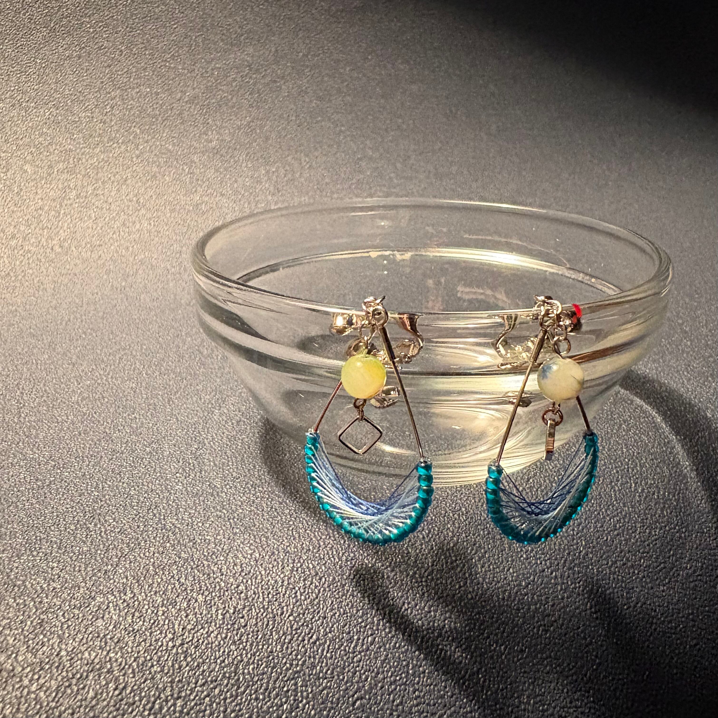 ・ブルーを基調とした爽やかで落ち着いた印象の揺れるタイプの耳飾り