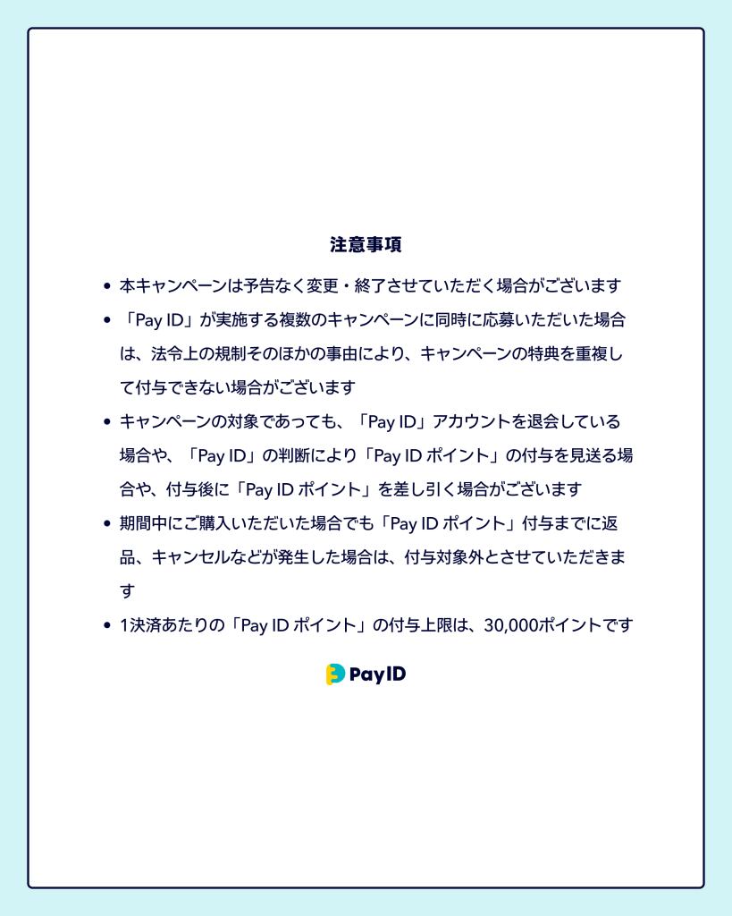 「Pay ID ポイント」10%還元(上限:1決済あたり30,000ポイント)