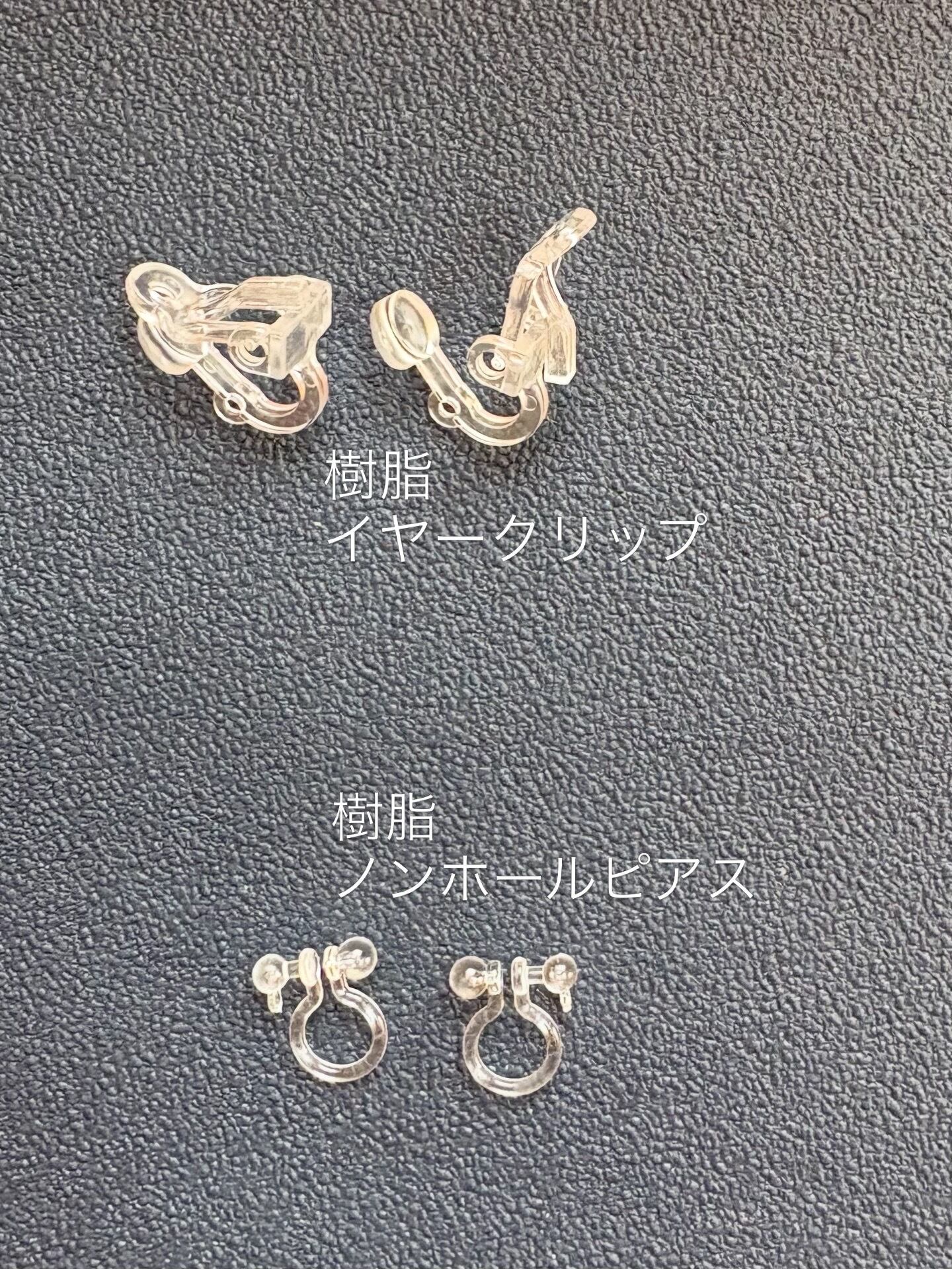 また、樹脂のクリップ・ノンホールピアスにも対応しておりますのでオプションより選択をお願いいたします。