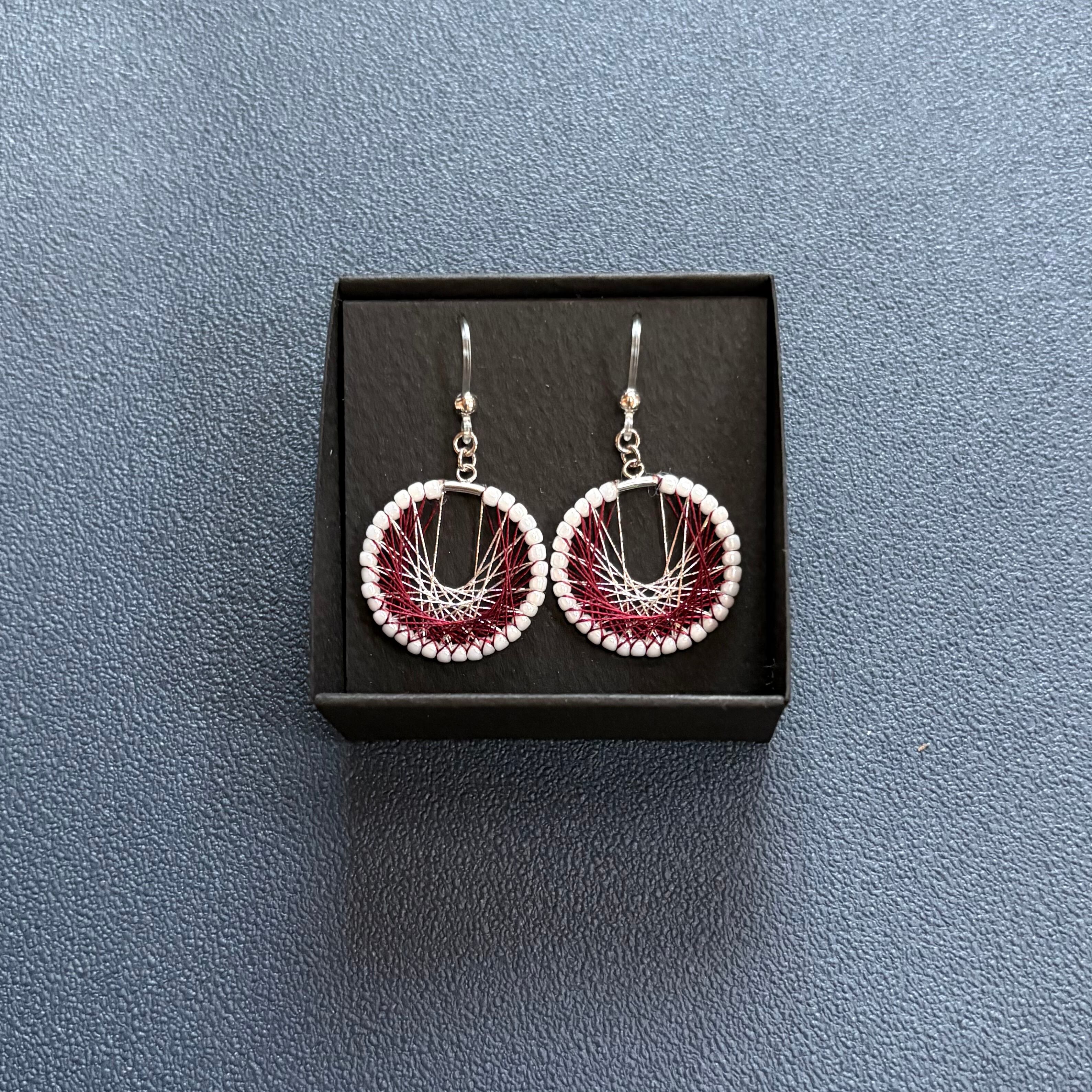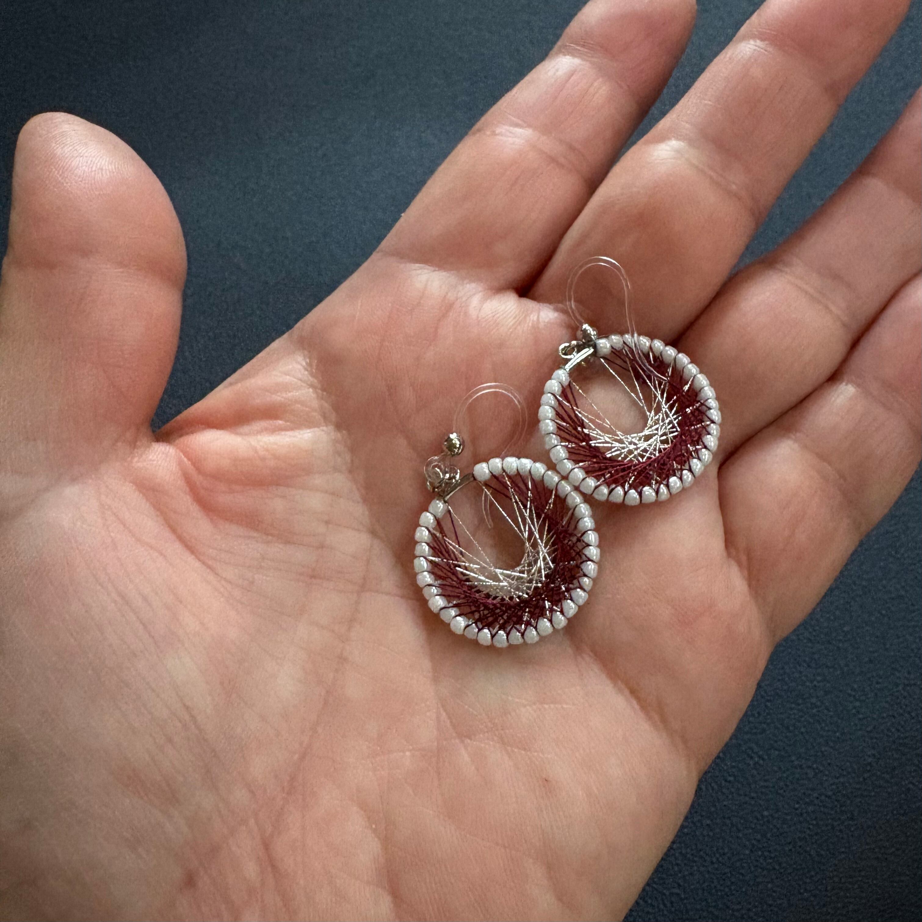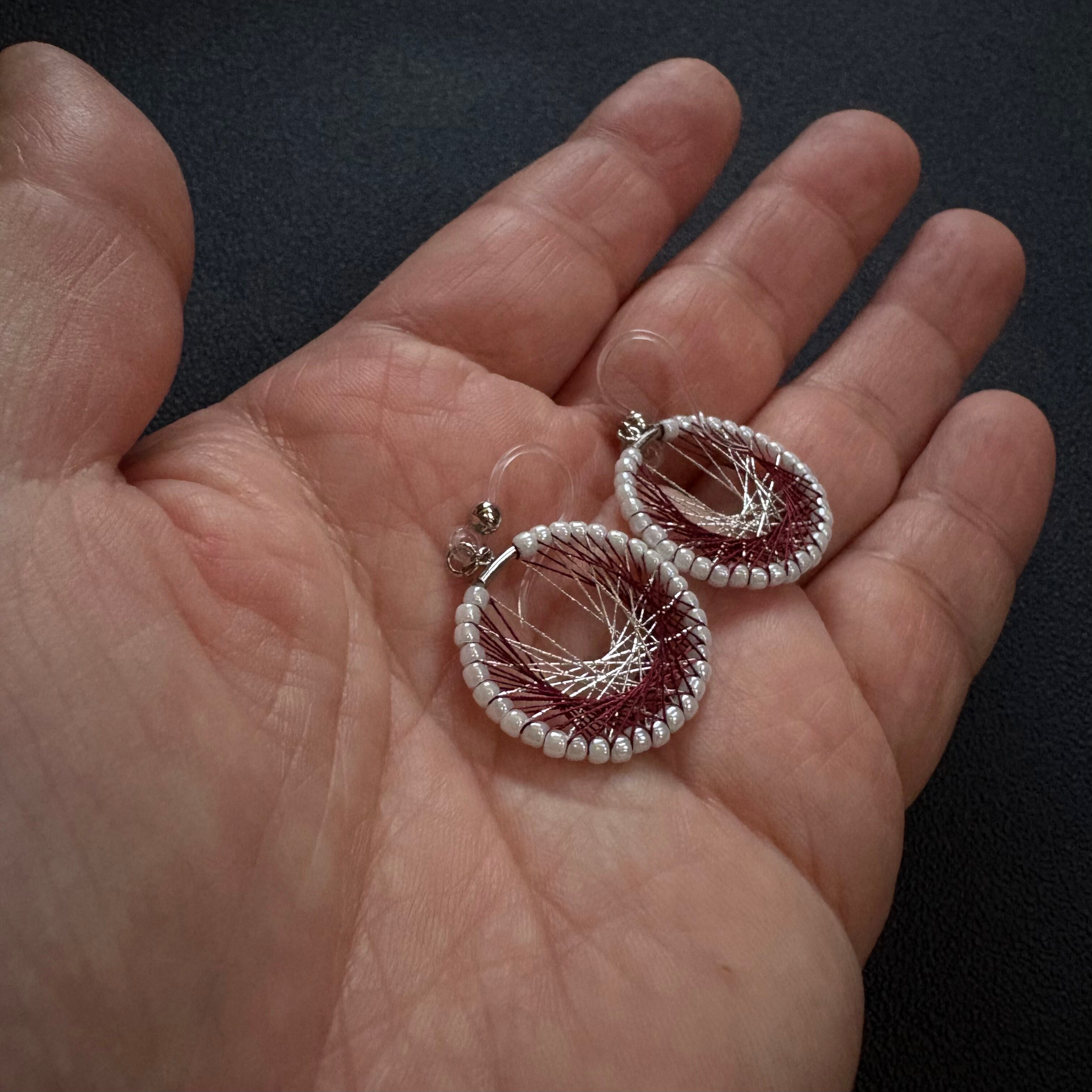 シルク糸と銀糸の上品な落ち着いた輝きが存在感のある耳飾り