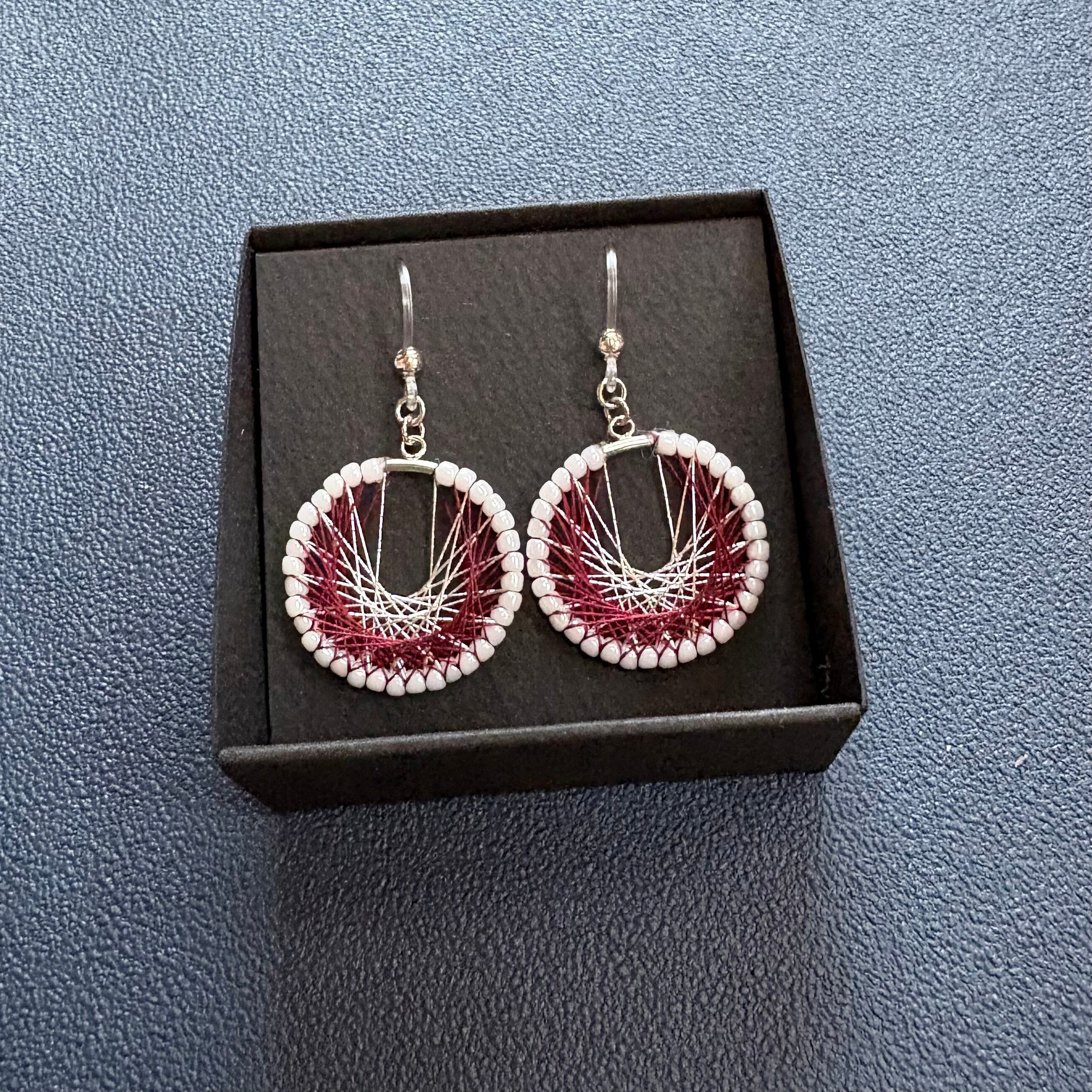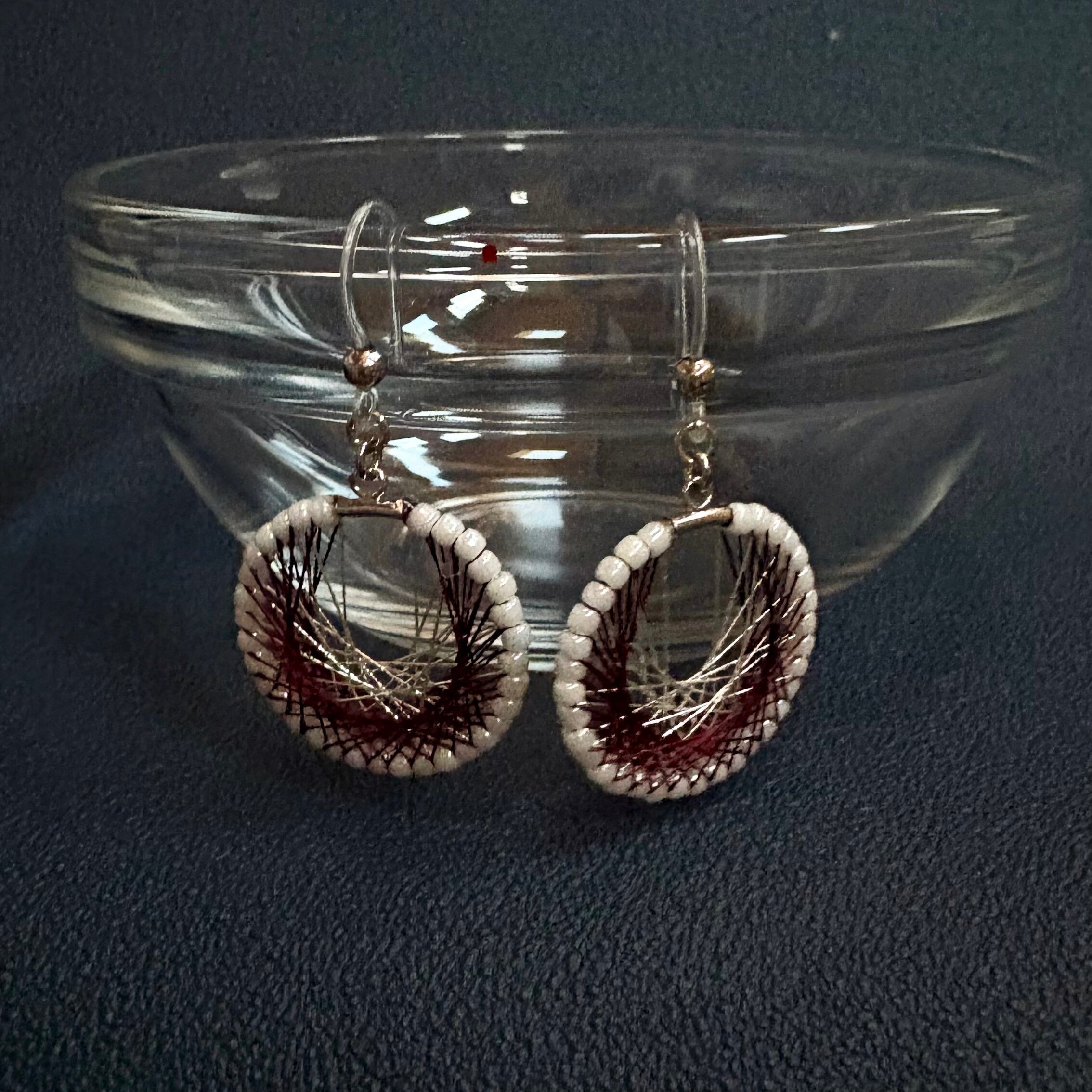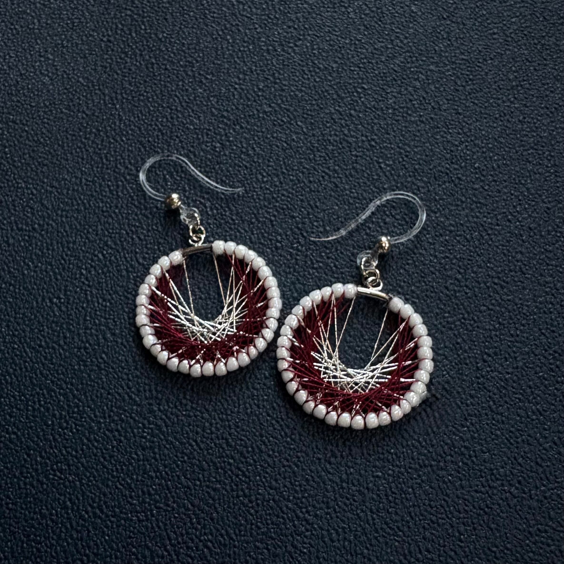 シルク糸と銀糸の上品な落ち着いた輝きが存在感のある耳飾り