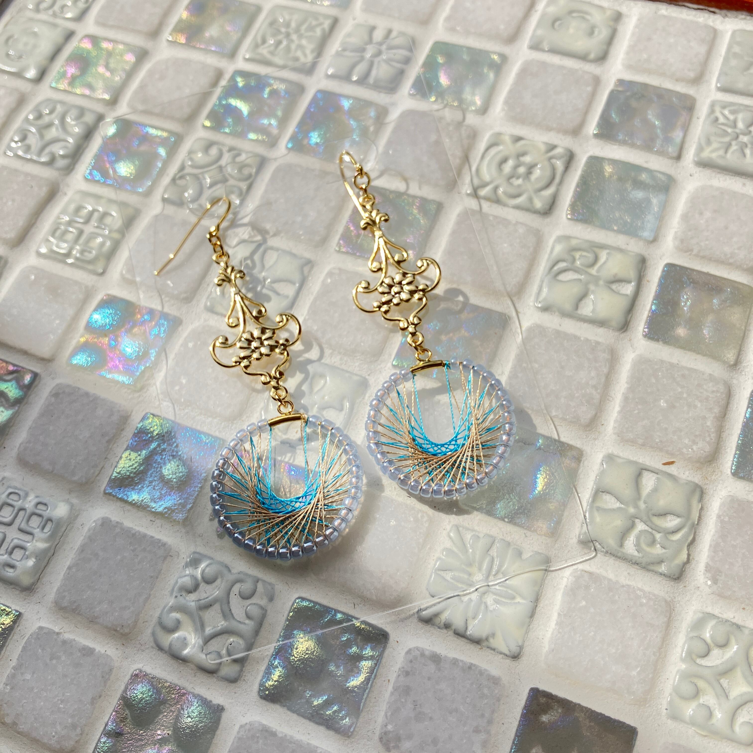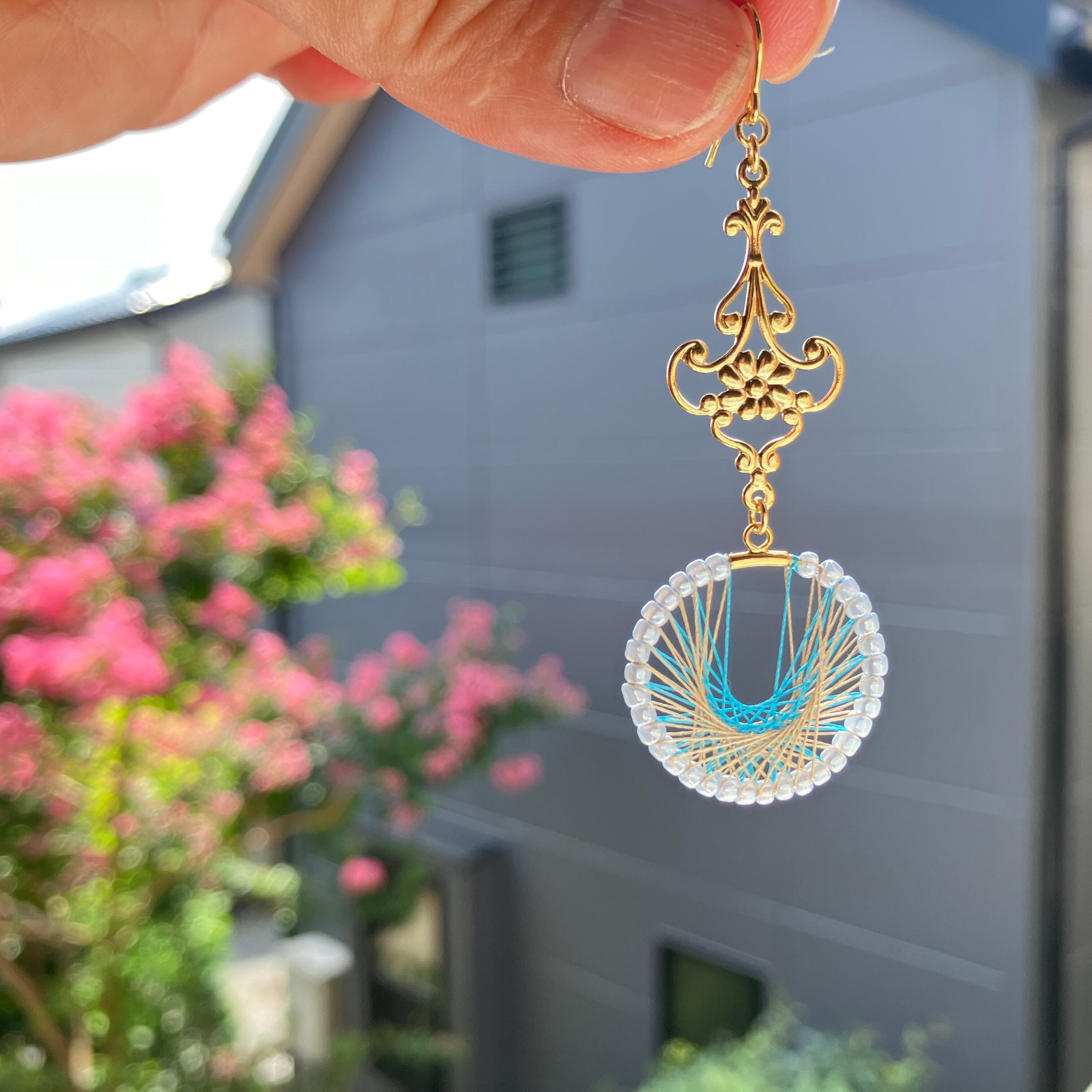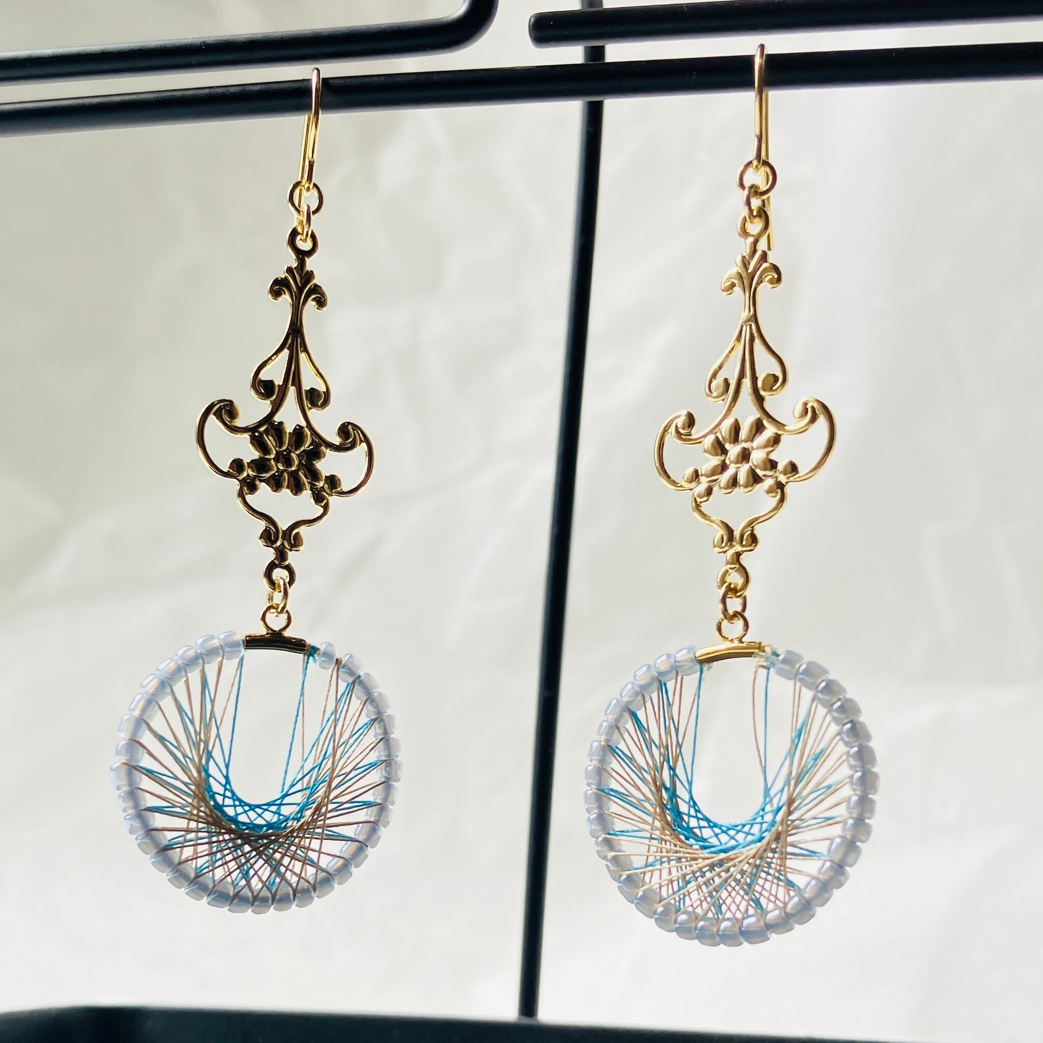絹糸とビーズの曼荼羅模様のアクセサリー