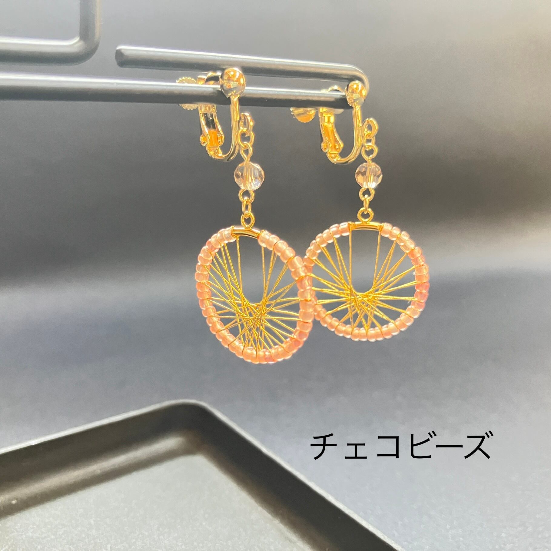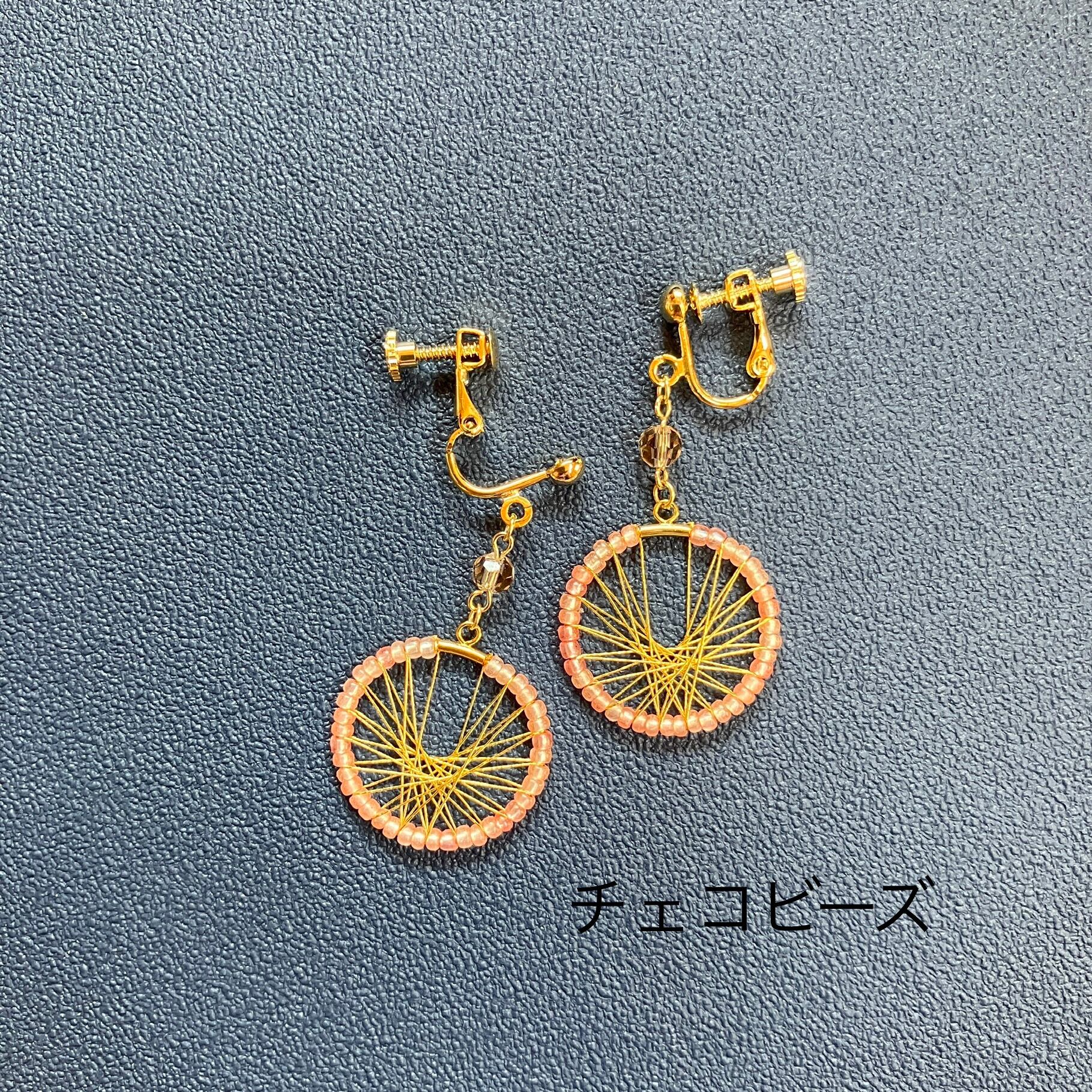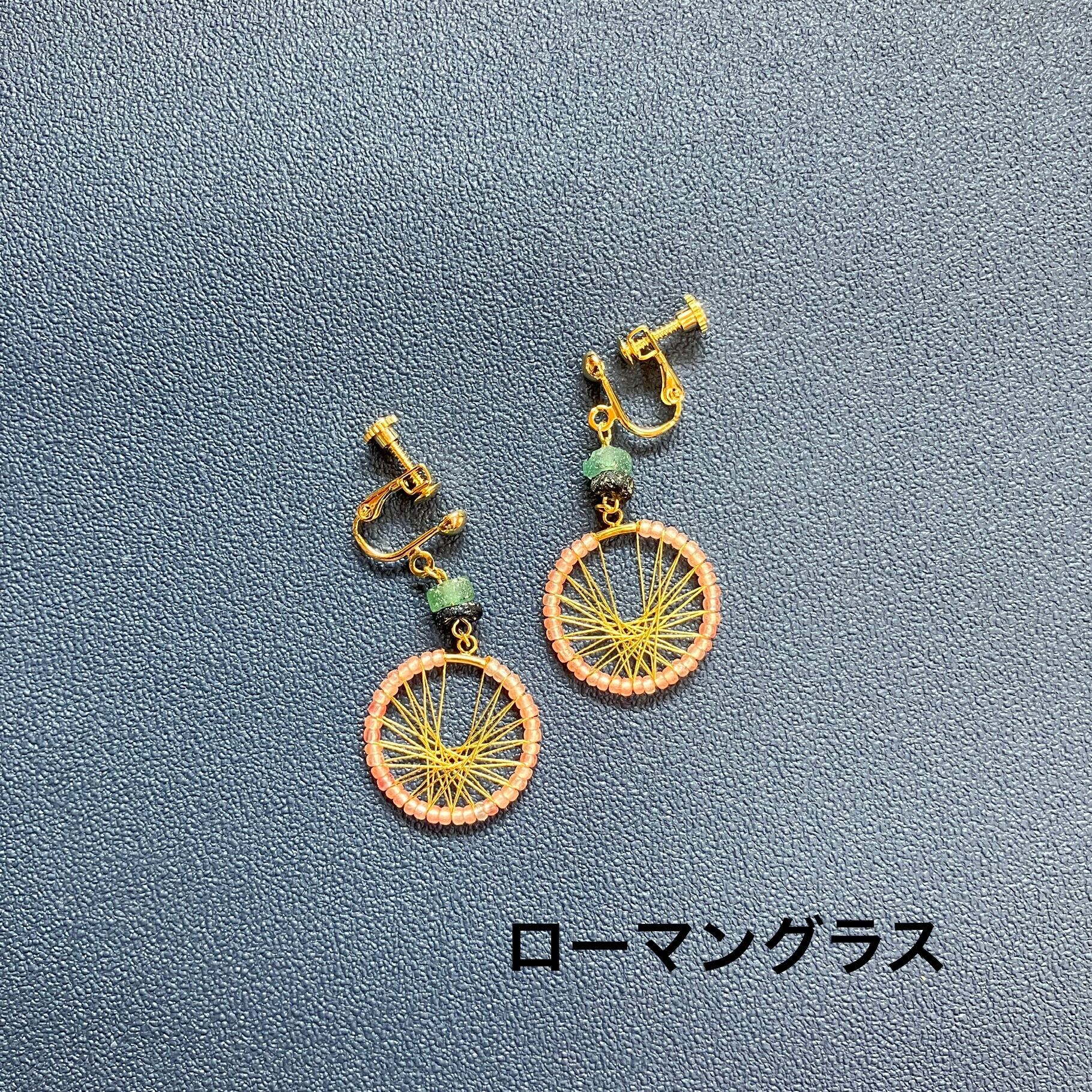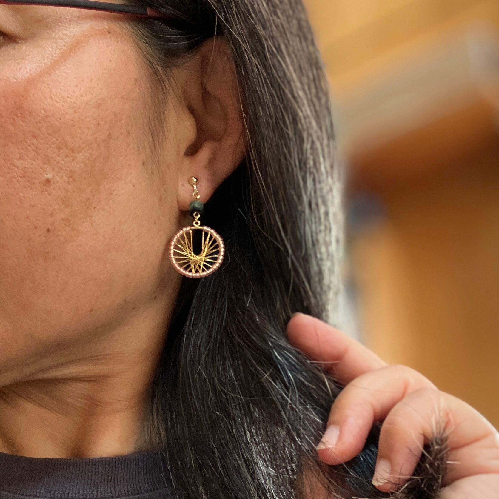 金糸と染めビーズの曼荼羅耳飾り【 DENTOUBI 】