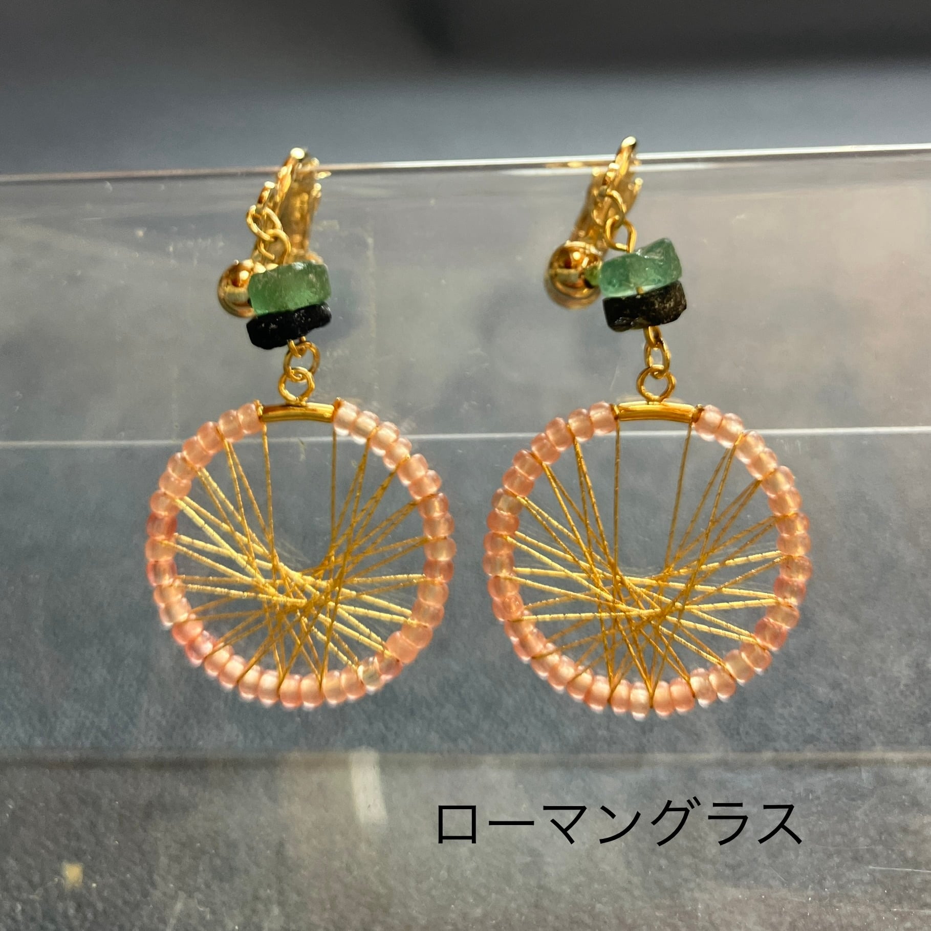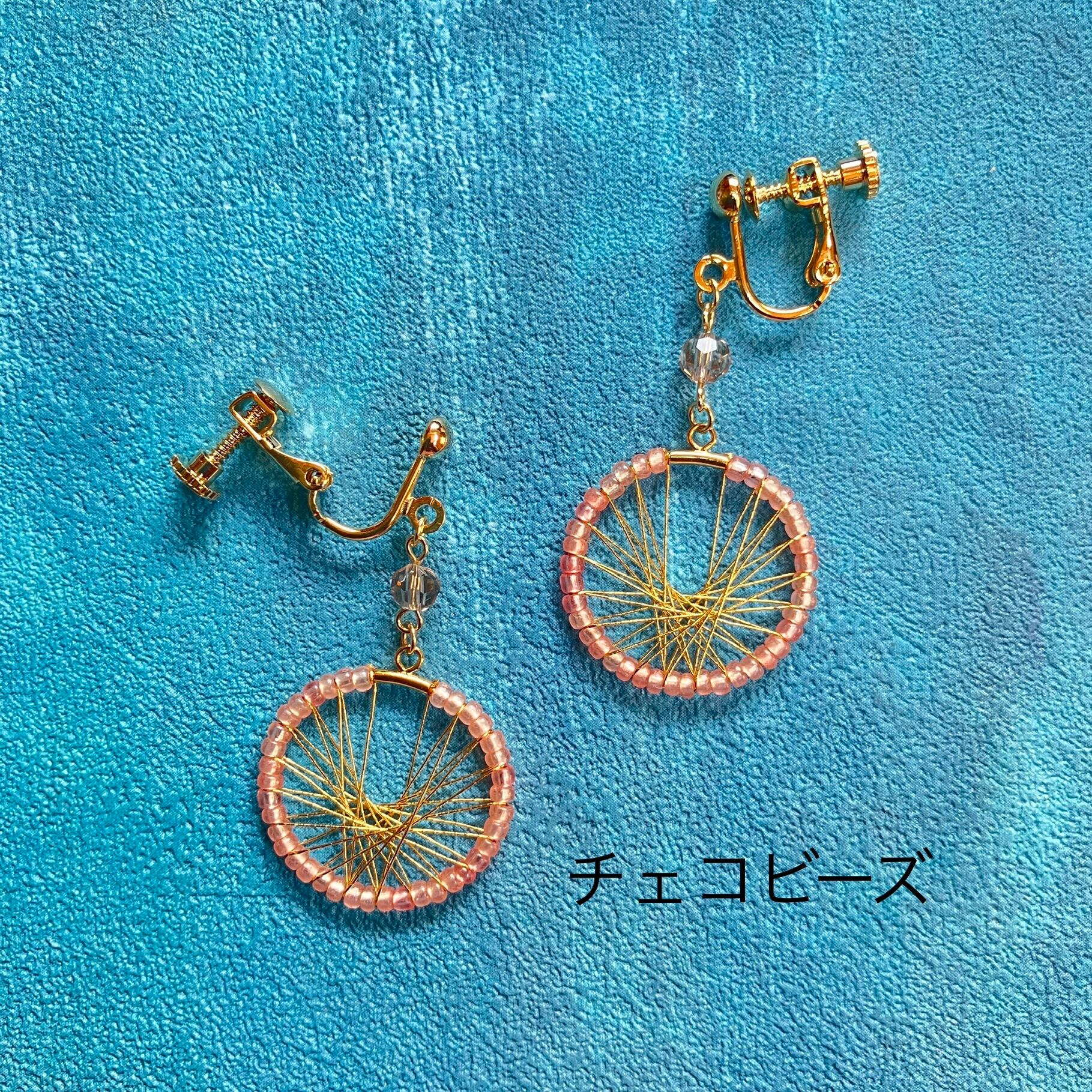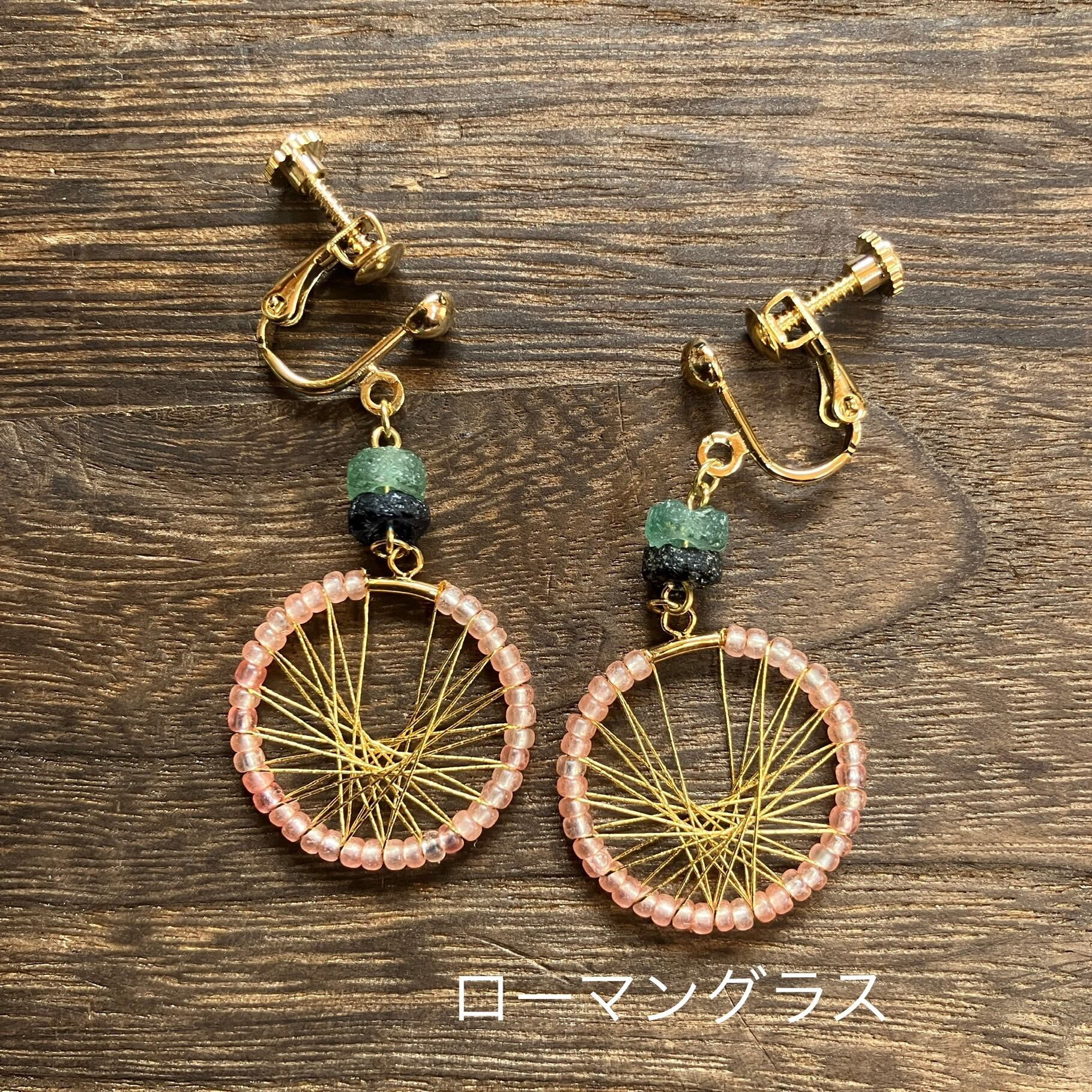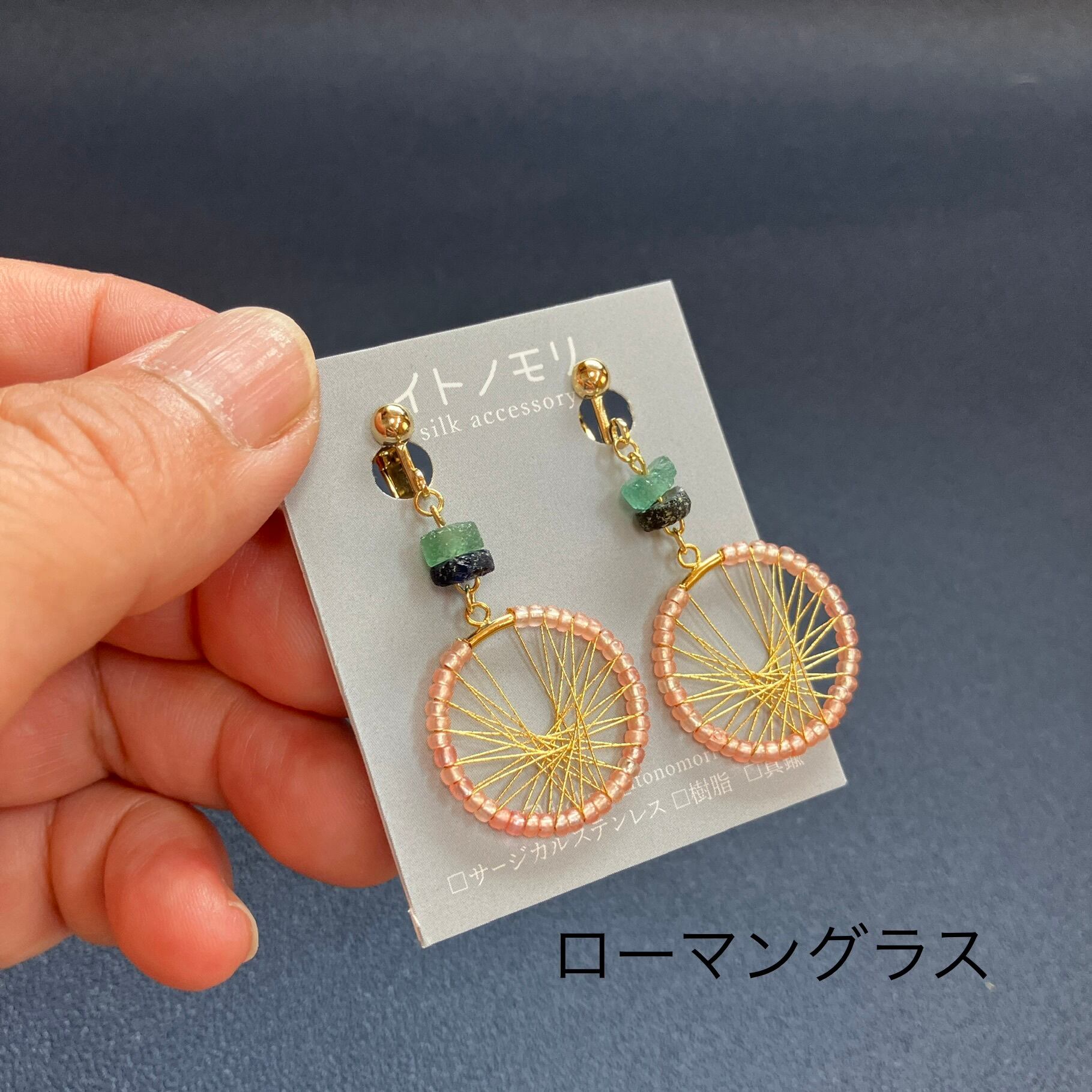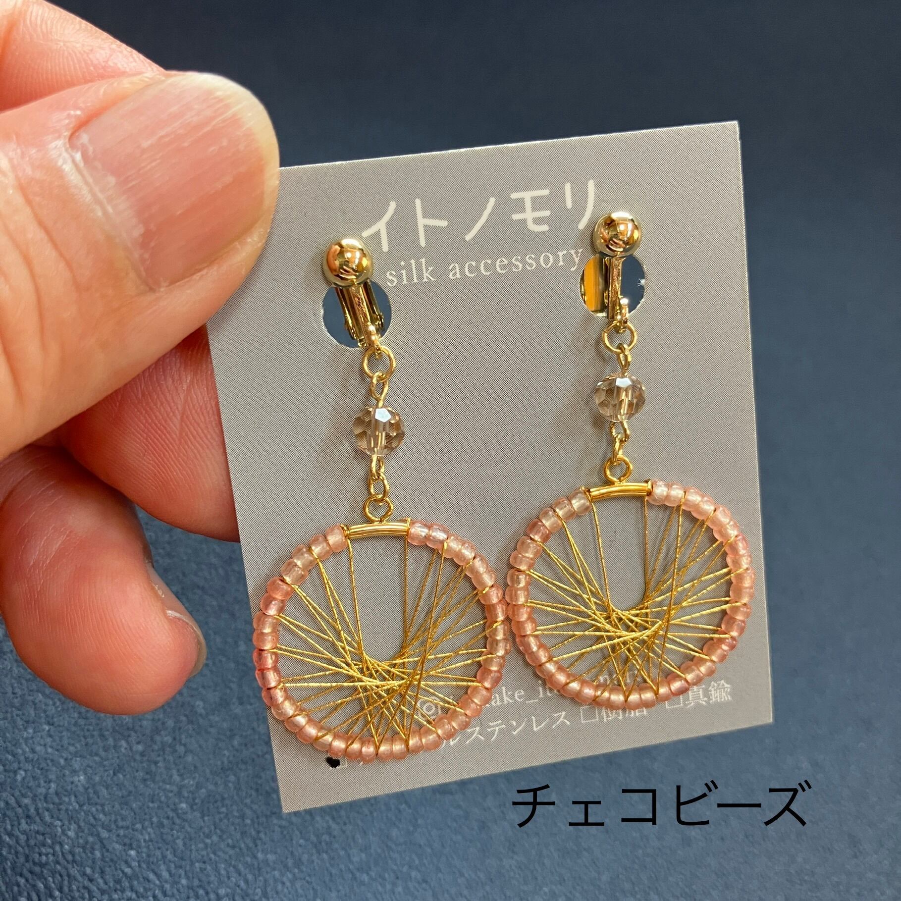 金糸と染めビーズの曼荼羅耳飾り【 DENTOUBI 】