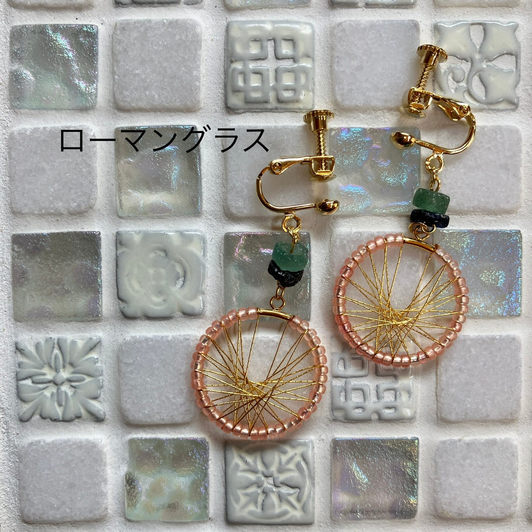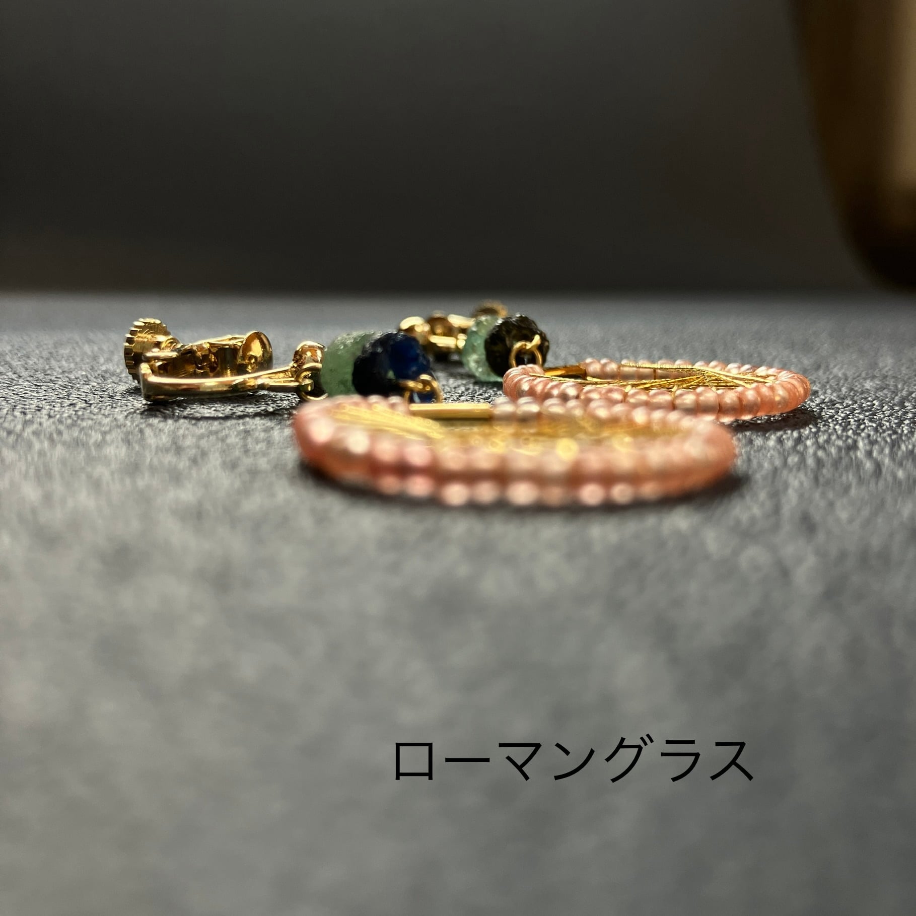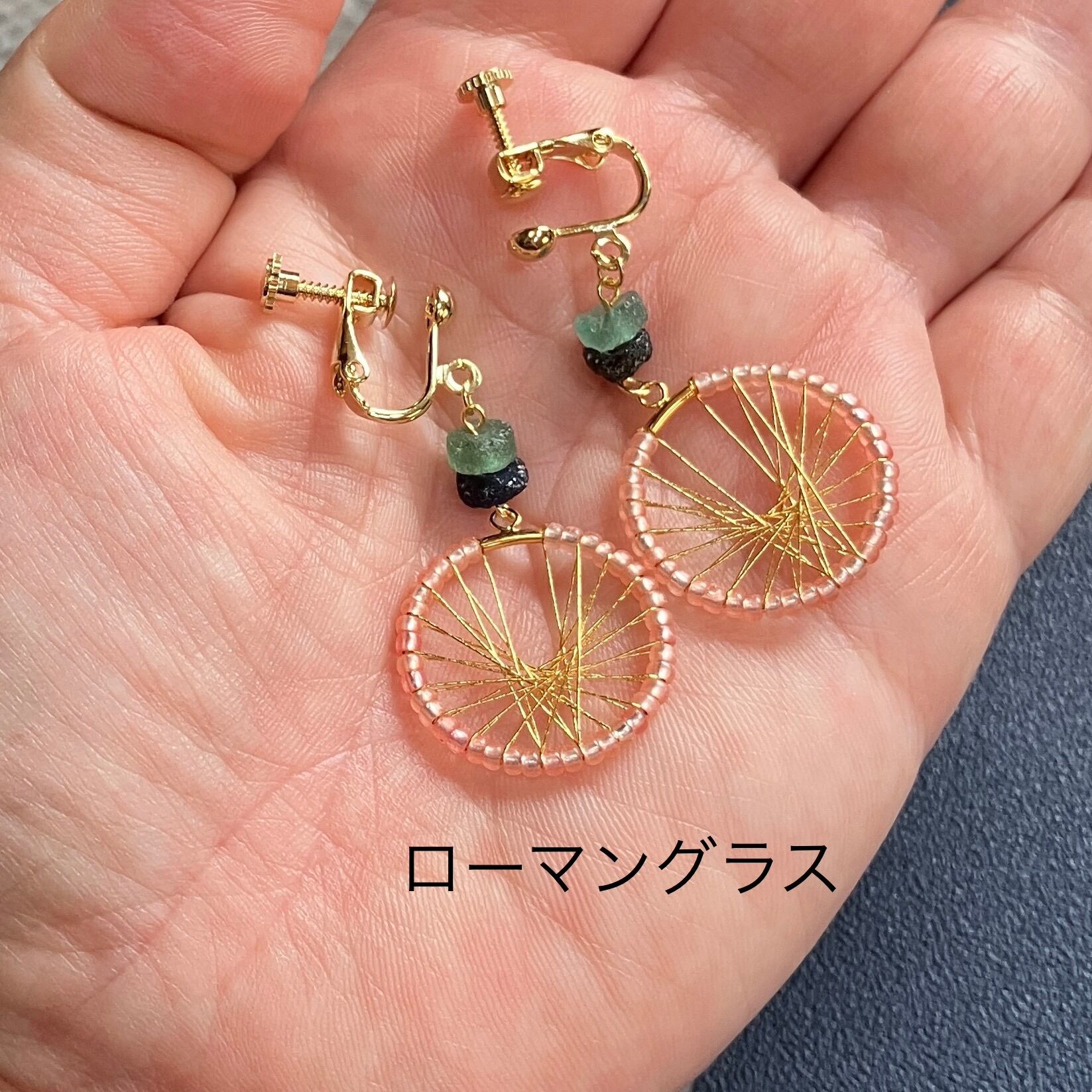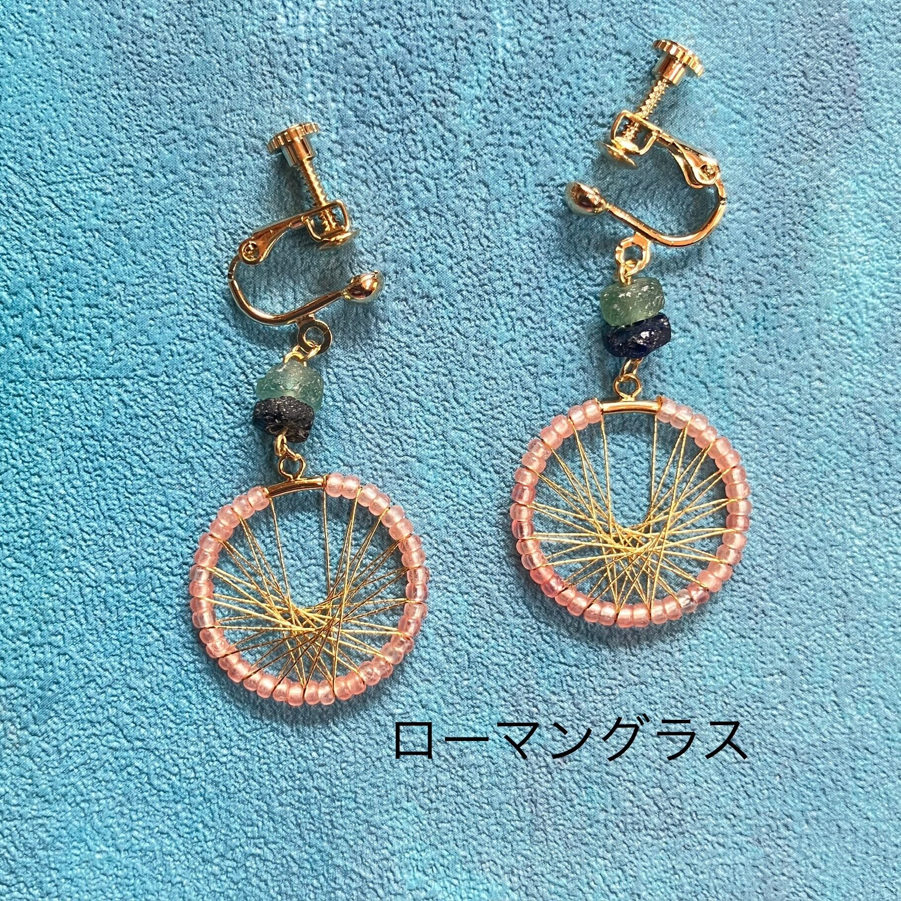 金糸と染めビーズの曼荼羅耳飾り【 DENTOUBI 】